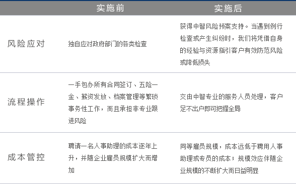 中智專(zhuān)業(yè)資深的顧問(wèn)式服務(wù)團隊是客戶(hù)身邊的人事輔助專(zhuān)家。我們充分發(fā)揮規模效應,依托全國服務(wù)網(wǎng)絡(luò )和領(lǐng)先IT技術(shù),為客戶(hù)交付合法合規的事務(wù)性操作結果,幫助企業(yè)全面提高人力資源管理效率。